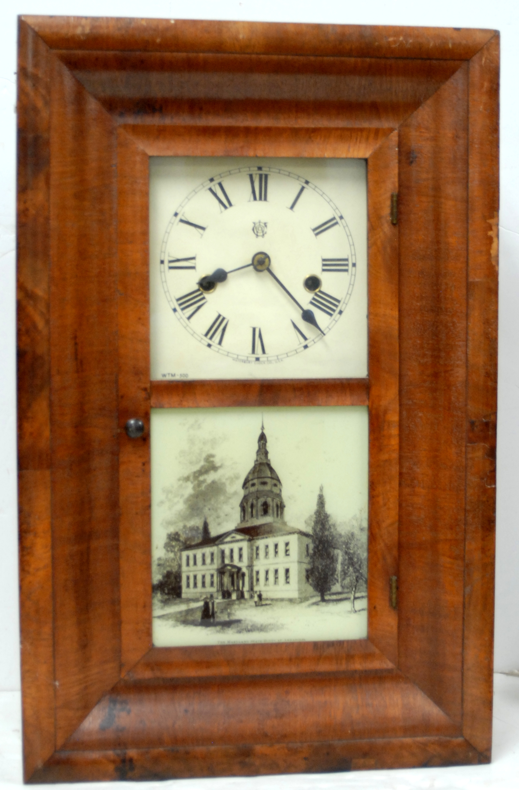 is running and striking and it still has the Geneva stops in place. Complete label inside with a Thomaston address. A nice all original