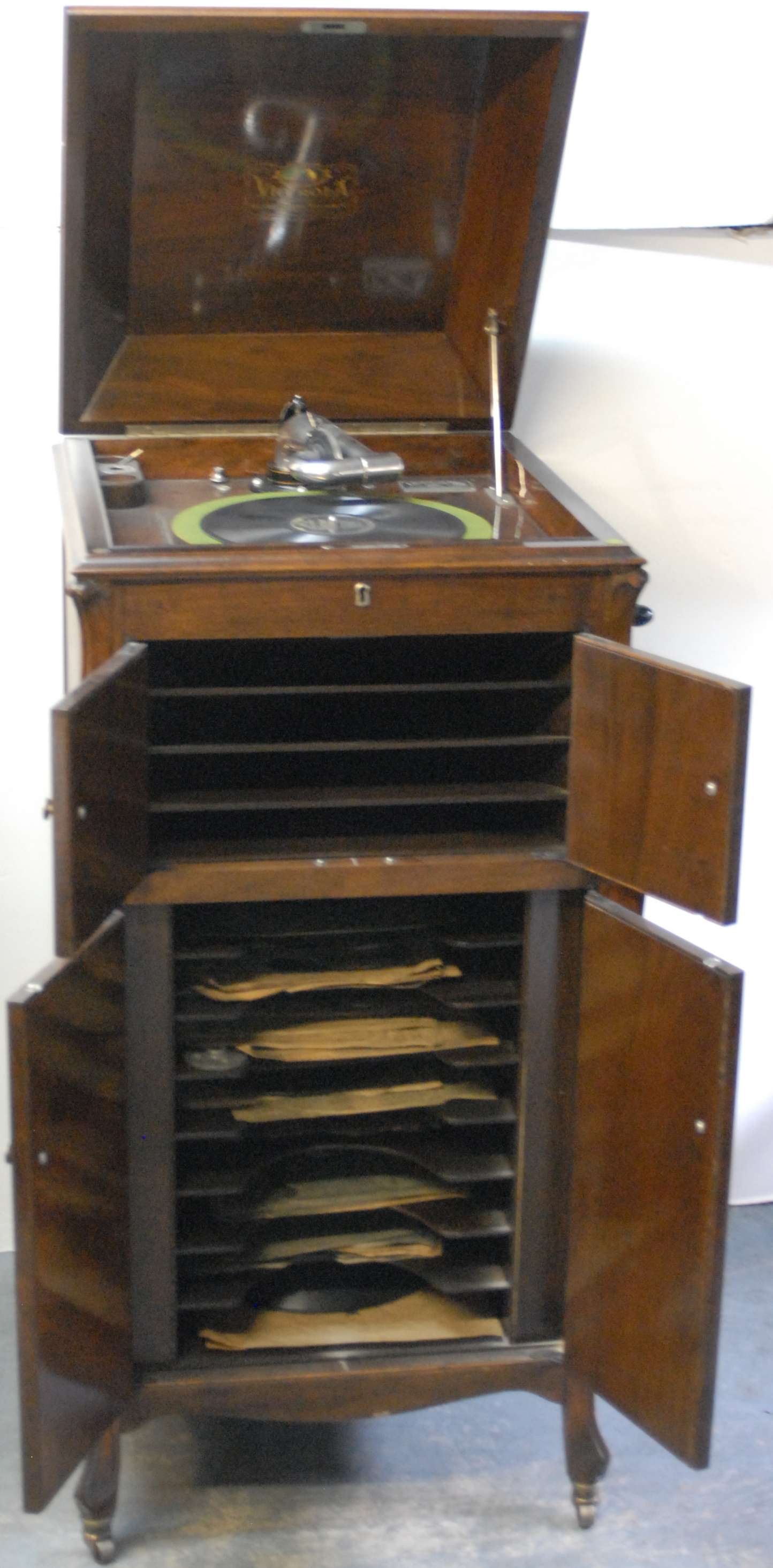 guy check it out before you spend your money. There is a large array of 78 rpm thick records in the lower cabinet. The phonograph