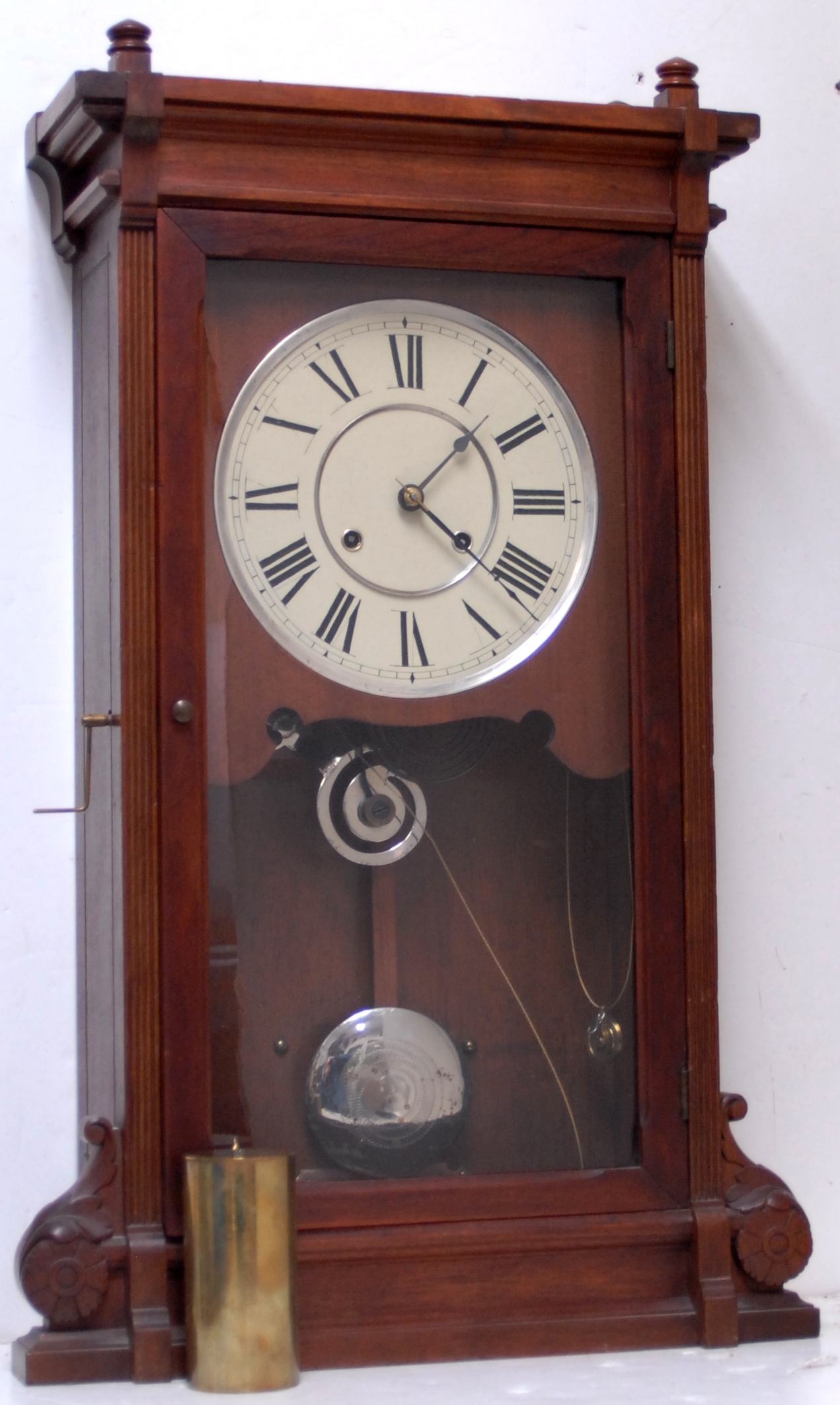 mostly there. The movement is 8 day, time and strike, and all parts are functioning properly. Ly-Waterbury, page 111. The clock has