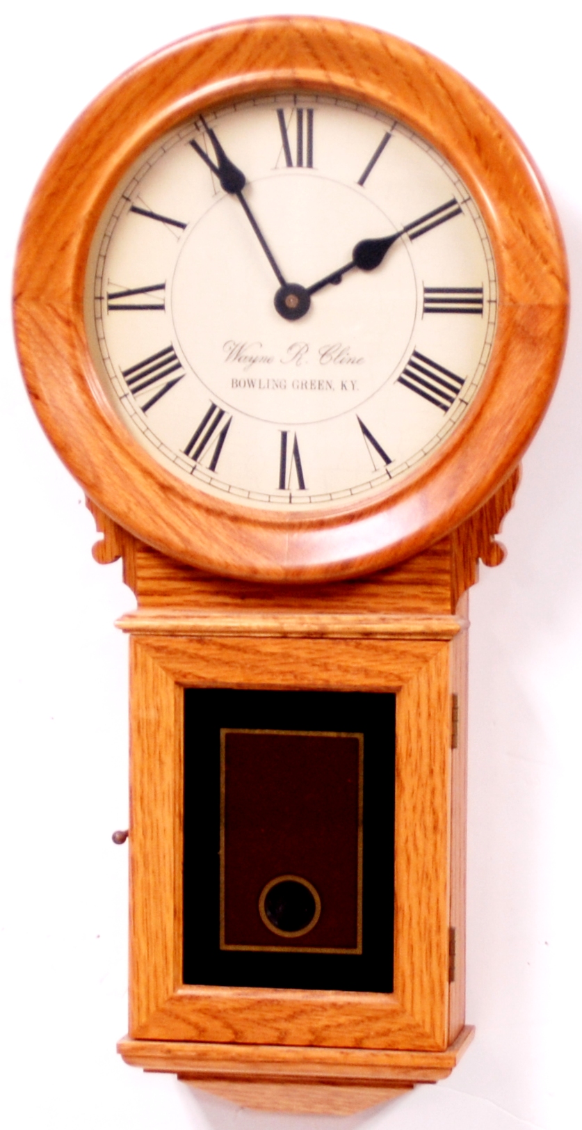 Green, Ky.”. The 8 day time only movement is running, original key inside the case. Before his death Mr. Cline made hundreds of replicas