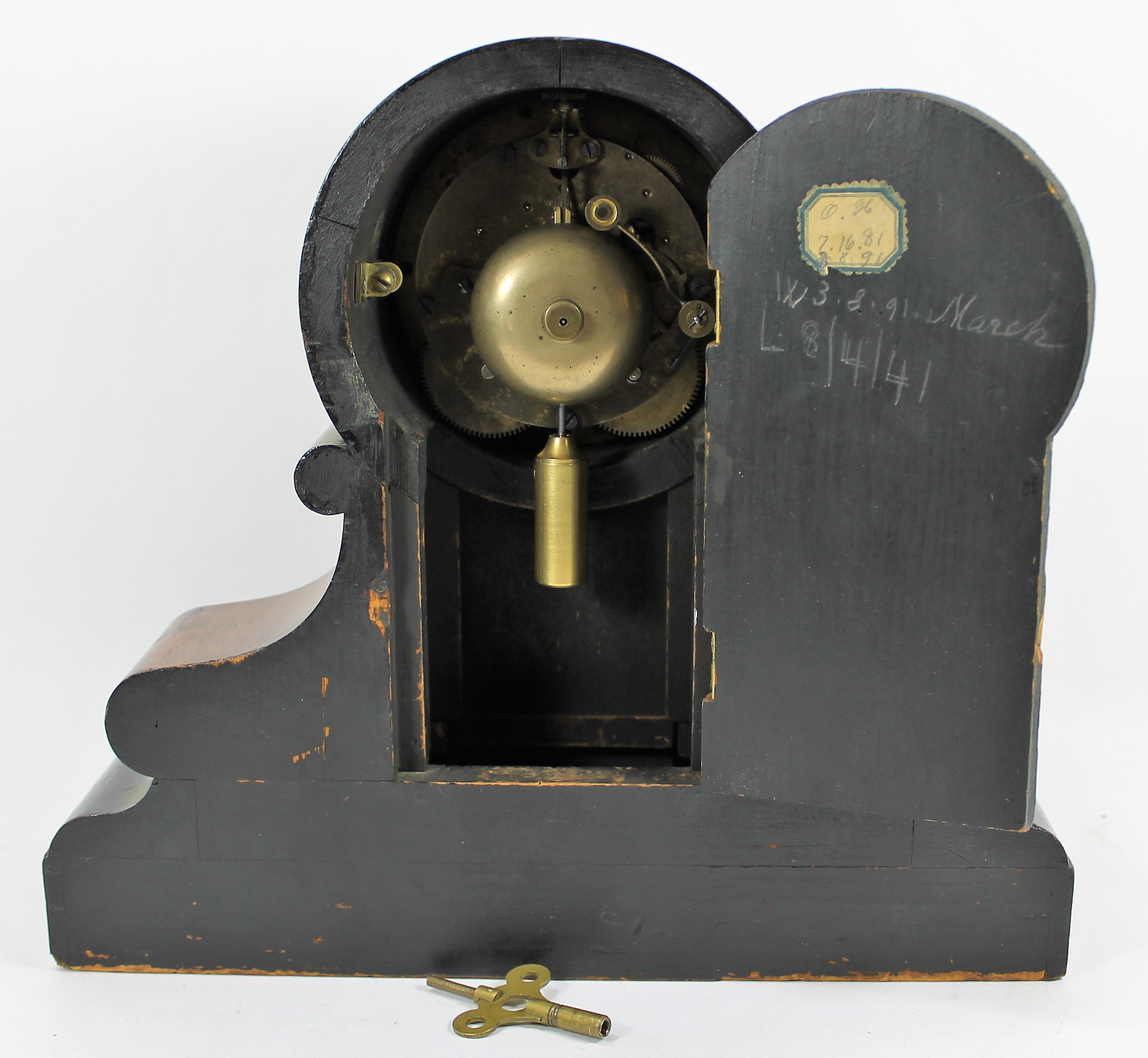 to be original. The movement is an unsigned 30-hour lever movement (some were signed “Waterbury”, many were not) that is running,