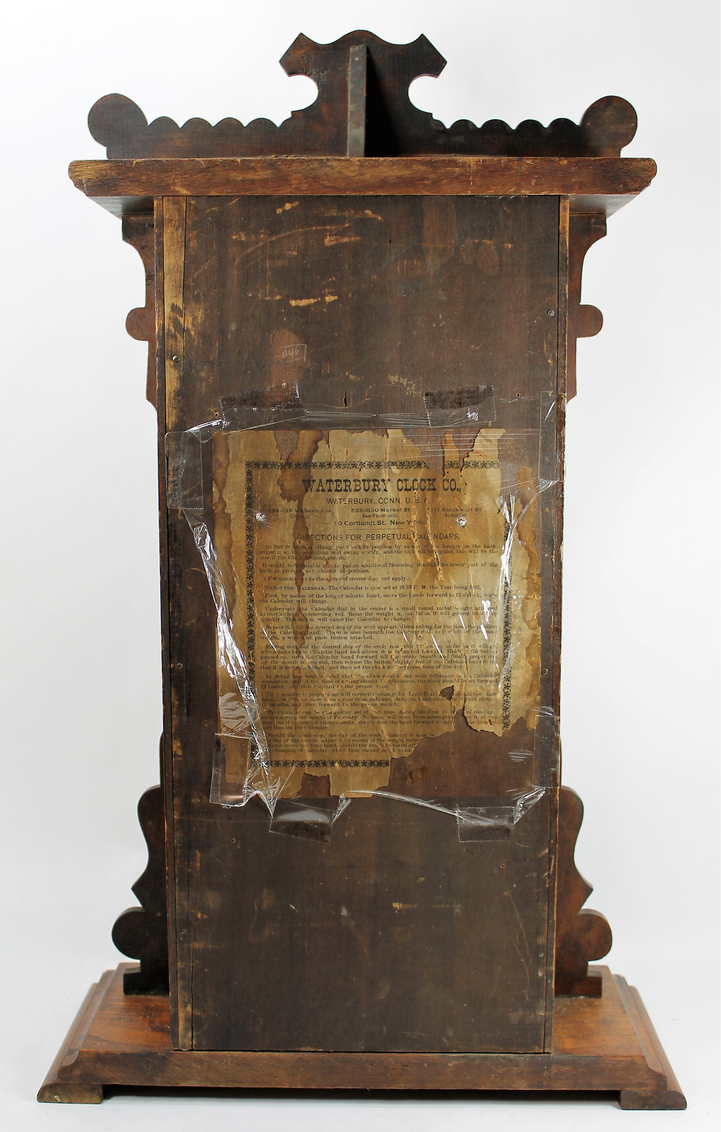 Waterbury “Calendar No. 44”, ca. 1891. A 24-inch walnut case with an old finish, two signed,