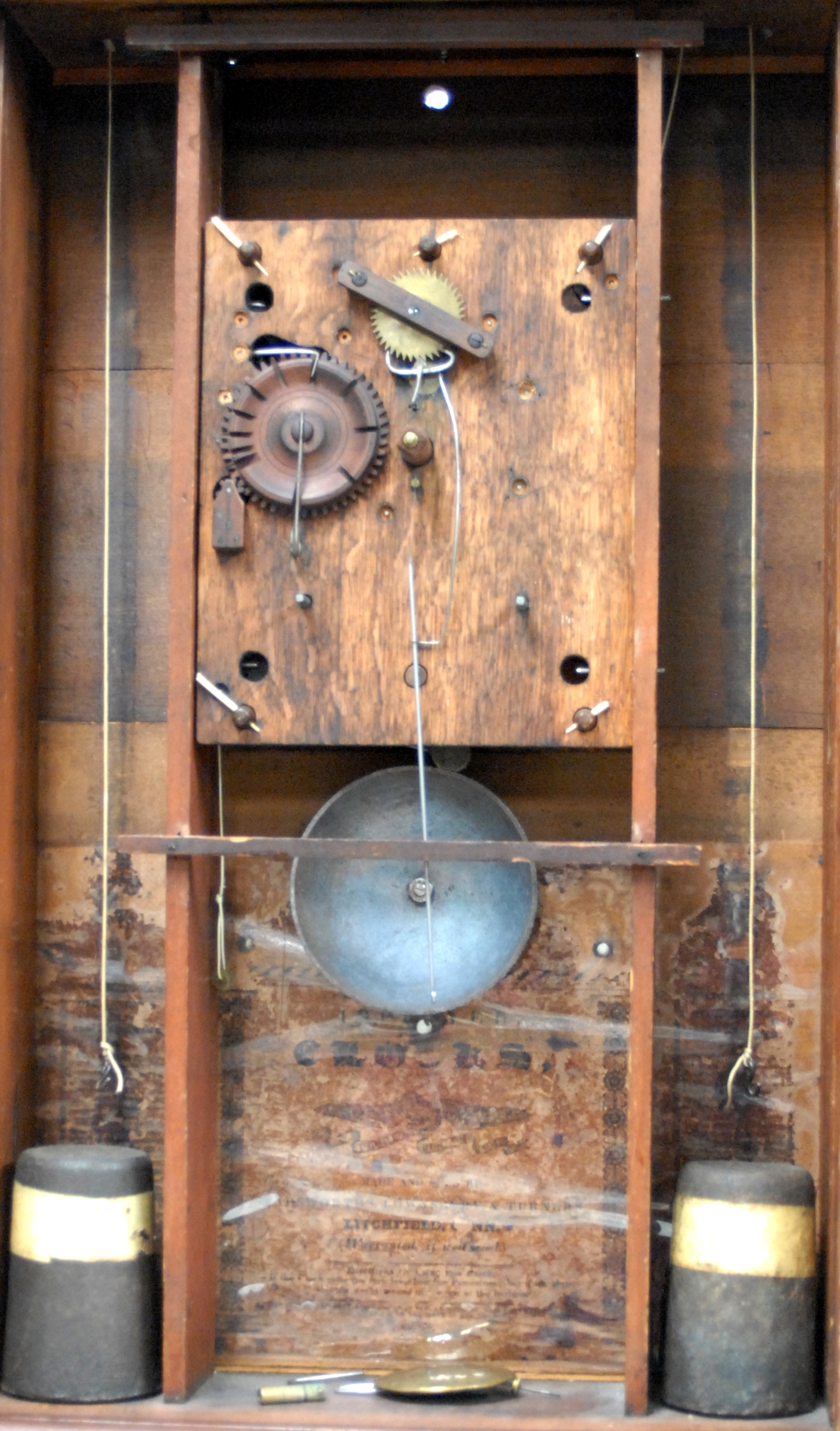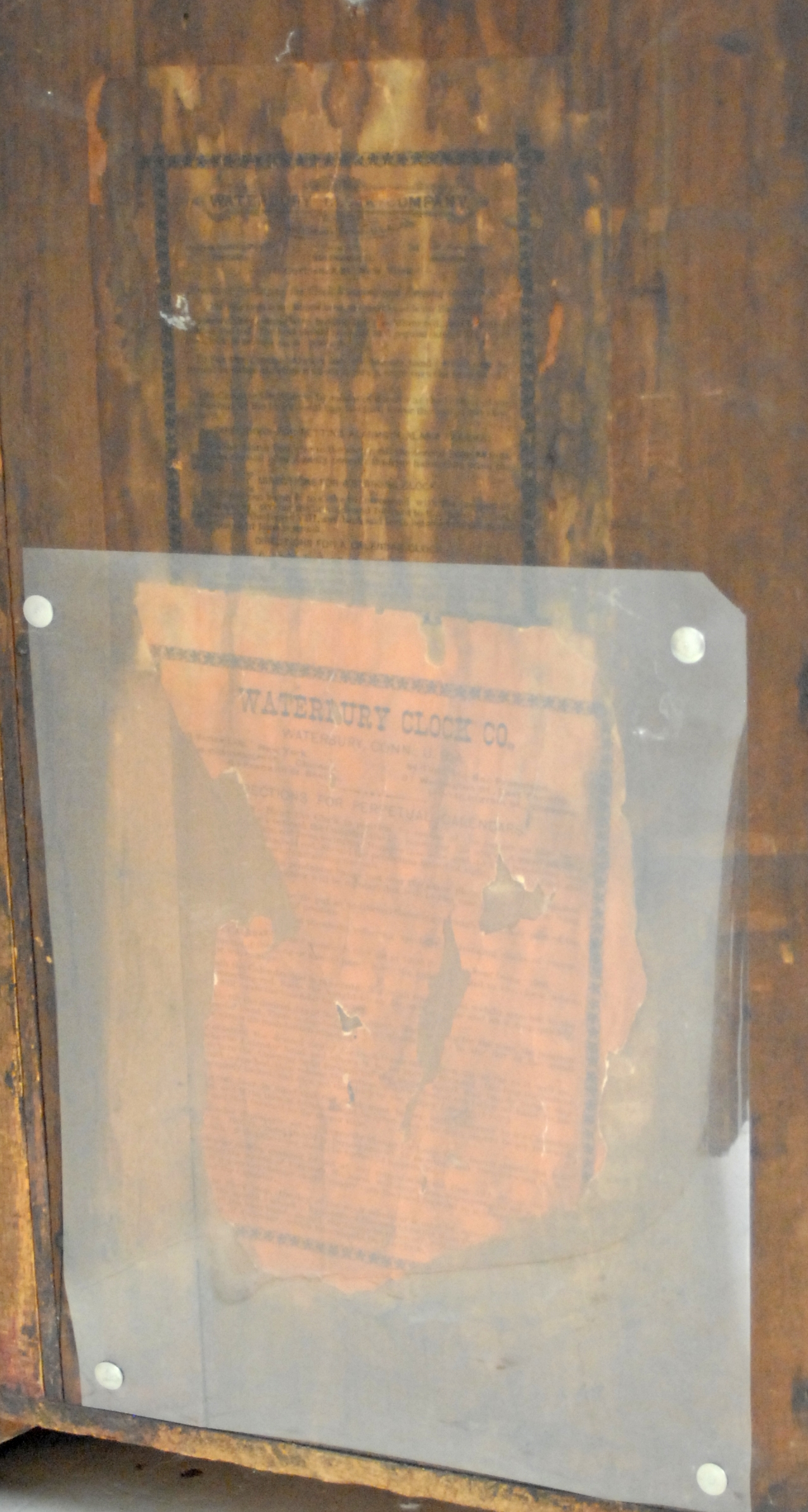 been stained to match the case finish. The running and calendar movements are operating properly, and inside is the original black