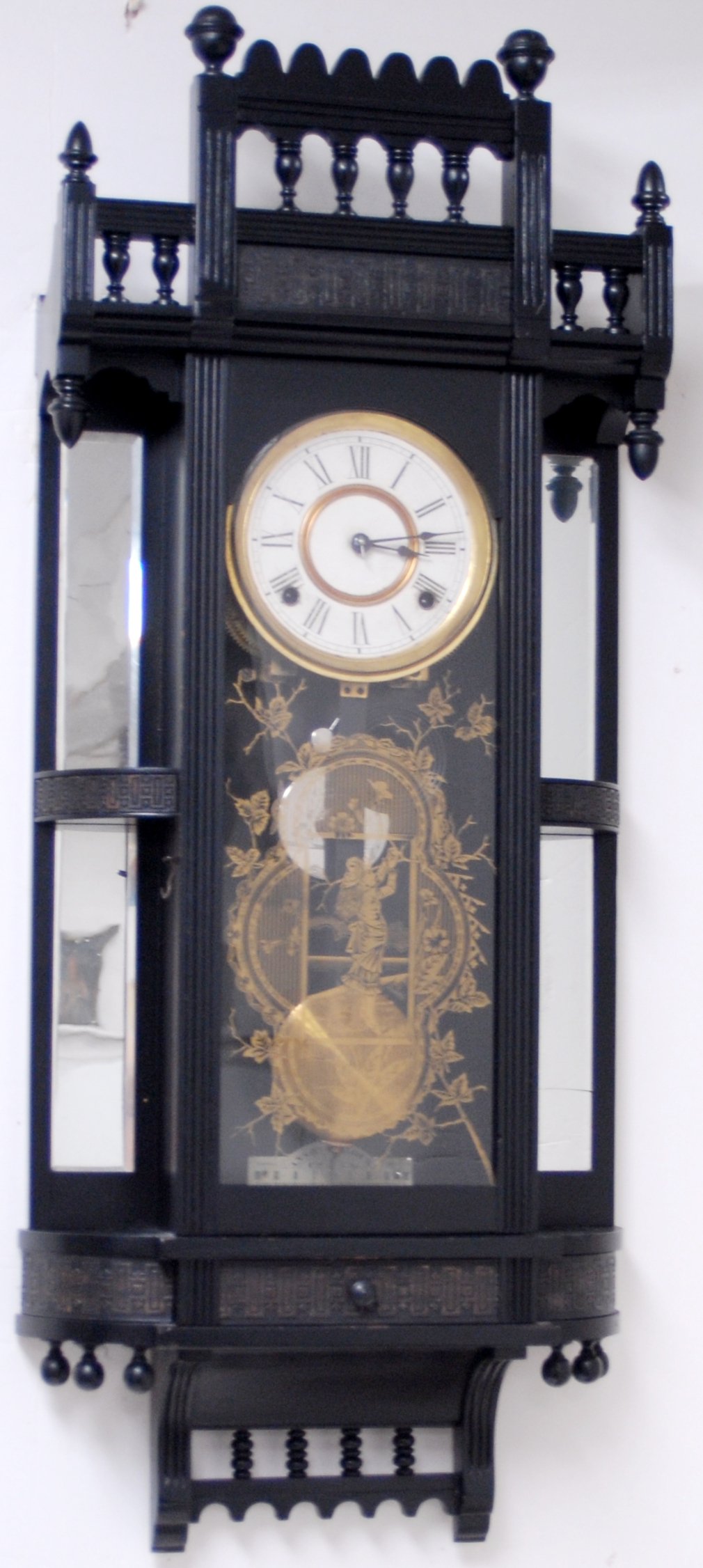Ansonia Clock Co. hanging clock, “Reflector”, ca 1883. This one