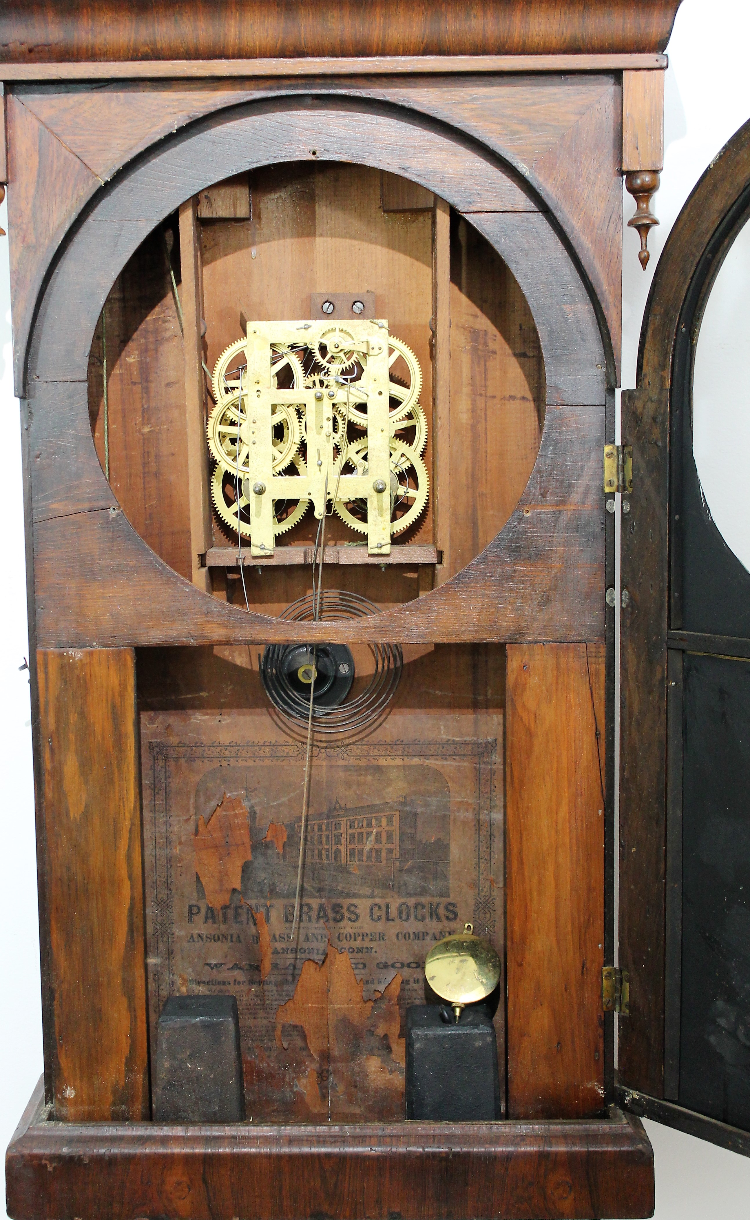 Ansonia Brass & Copper Co. shelf clock, 1869-1877. A large (33-inch) weight-driven shelf