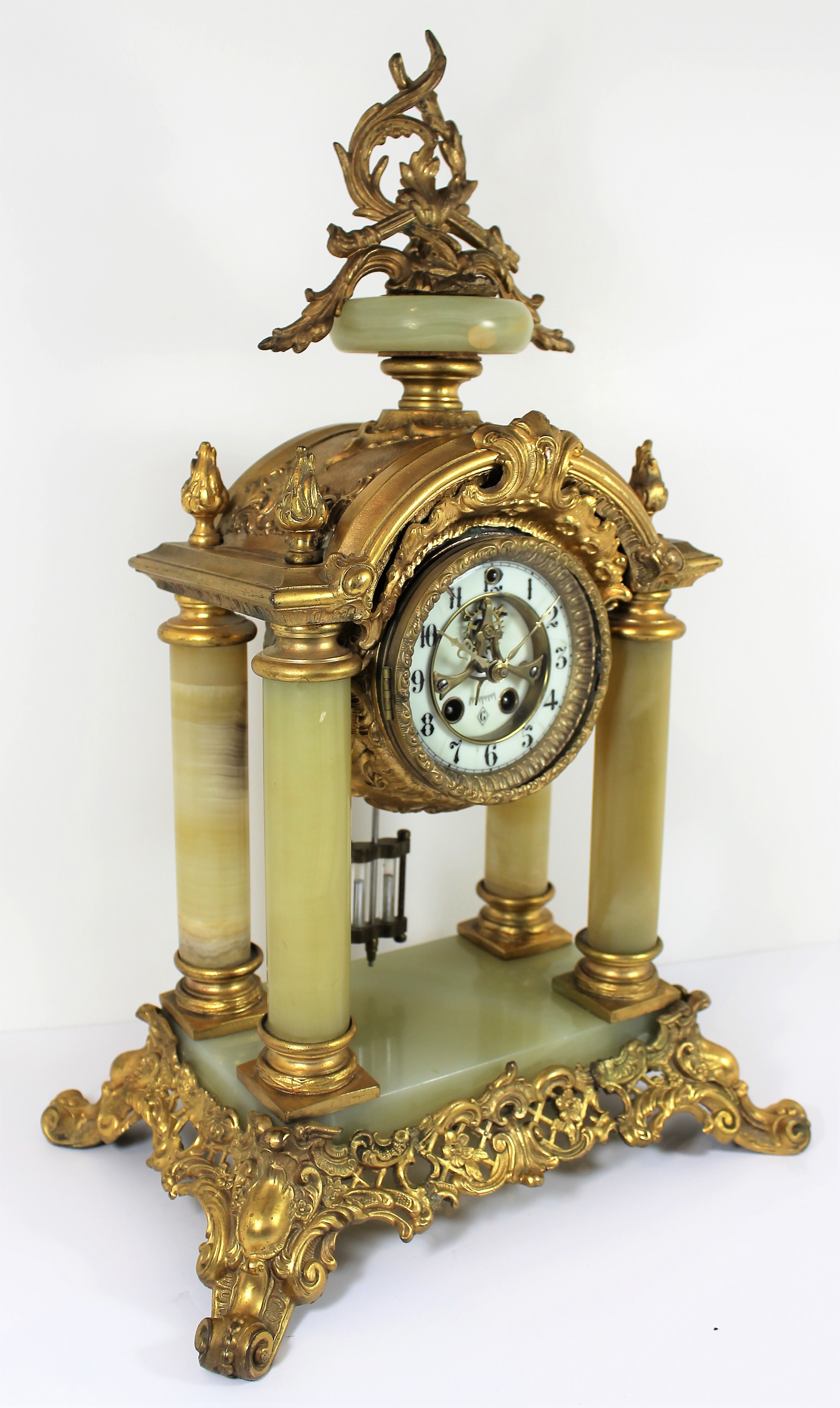 Wm. Gilbert “Tuscan”, ca. 1901. With "Brazilian Green Onyx Columns, Onyx Cap and Base, and a Rich