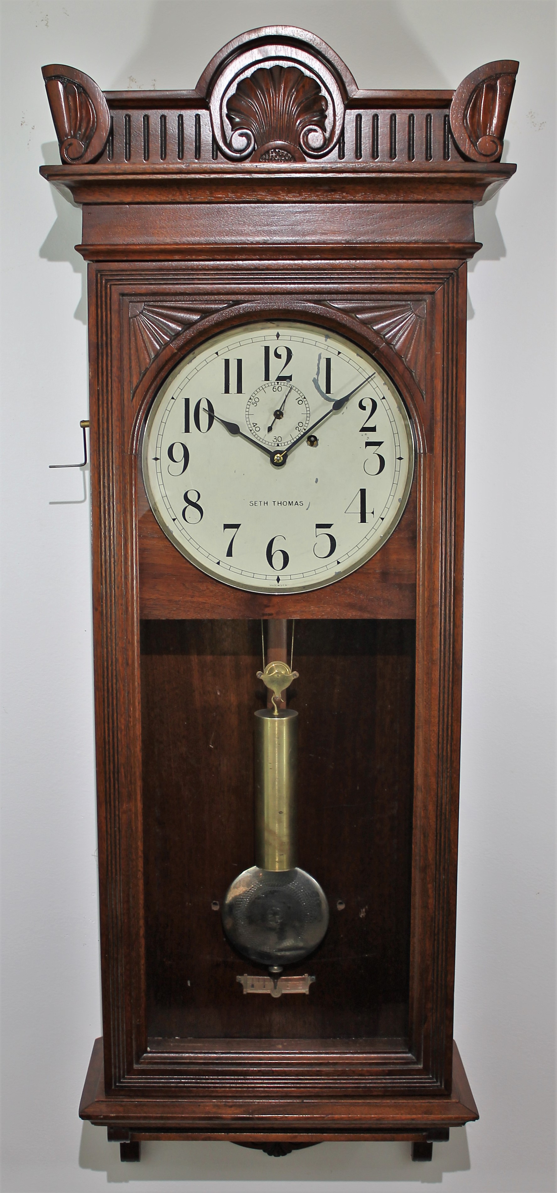 Seth Thomas “Regulator No. 9”, ca. 1896. This 48-inch clock came in walnut or cherry; this one is walnut