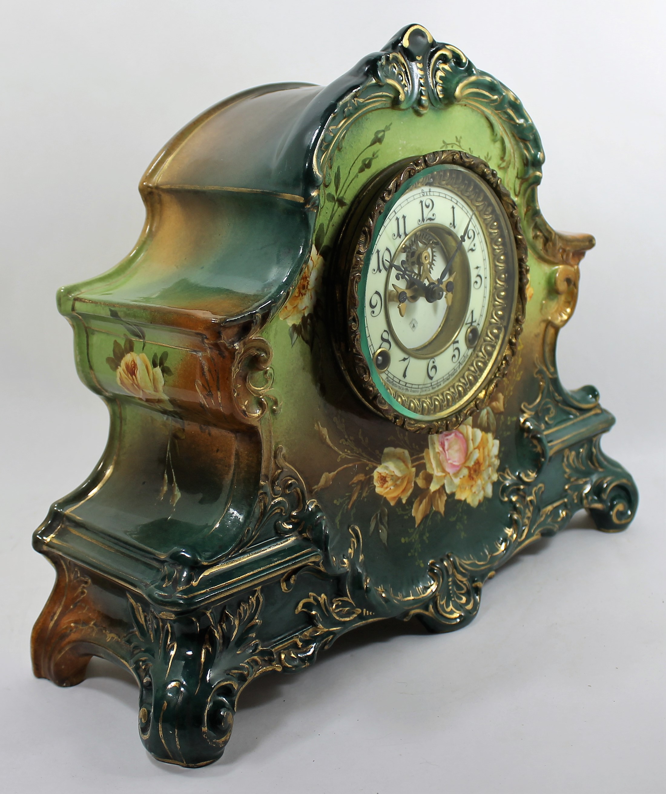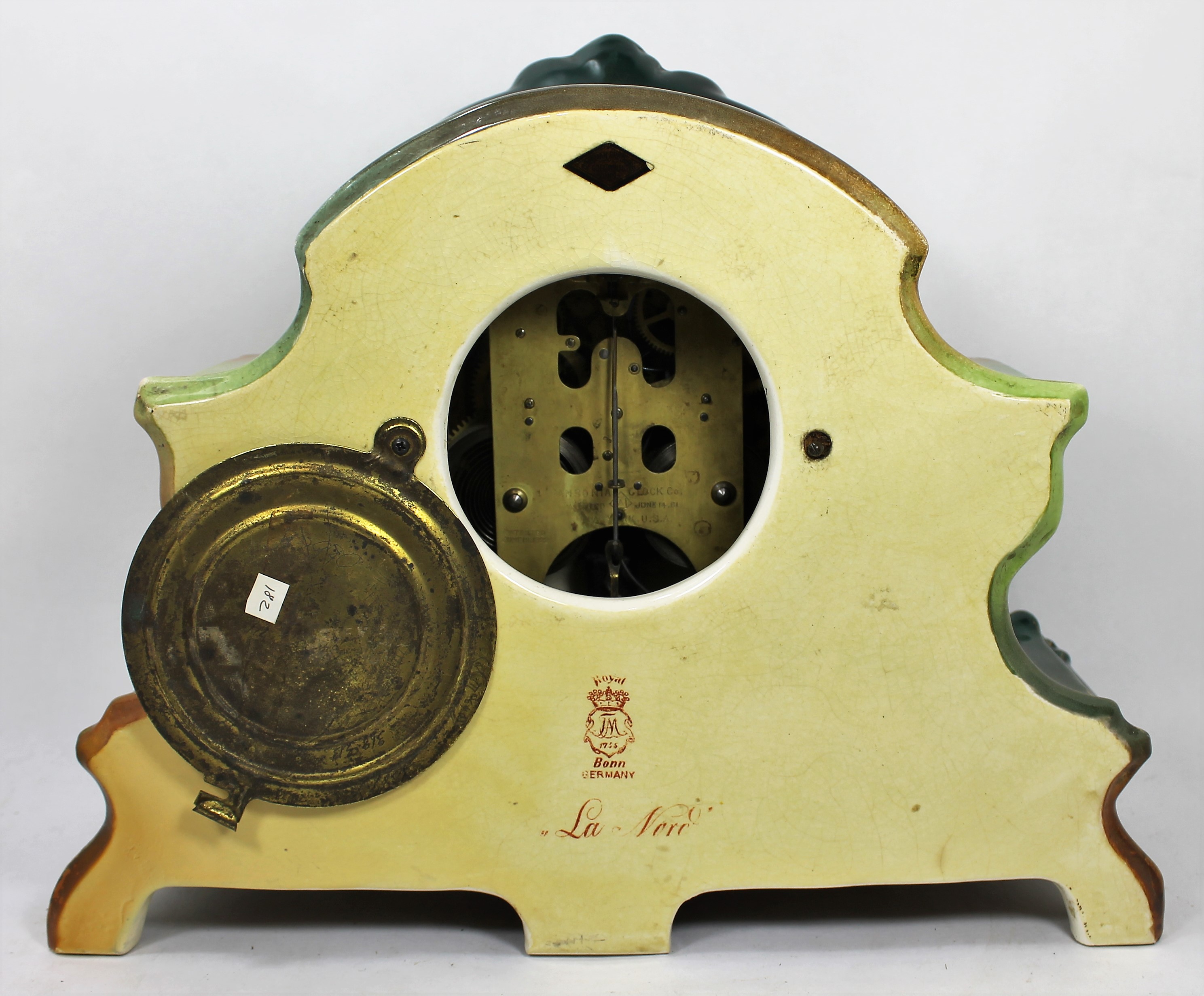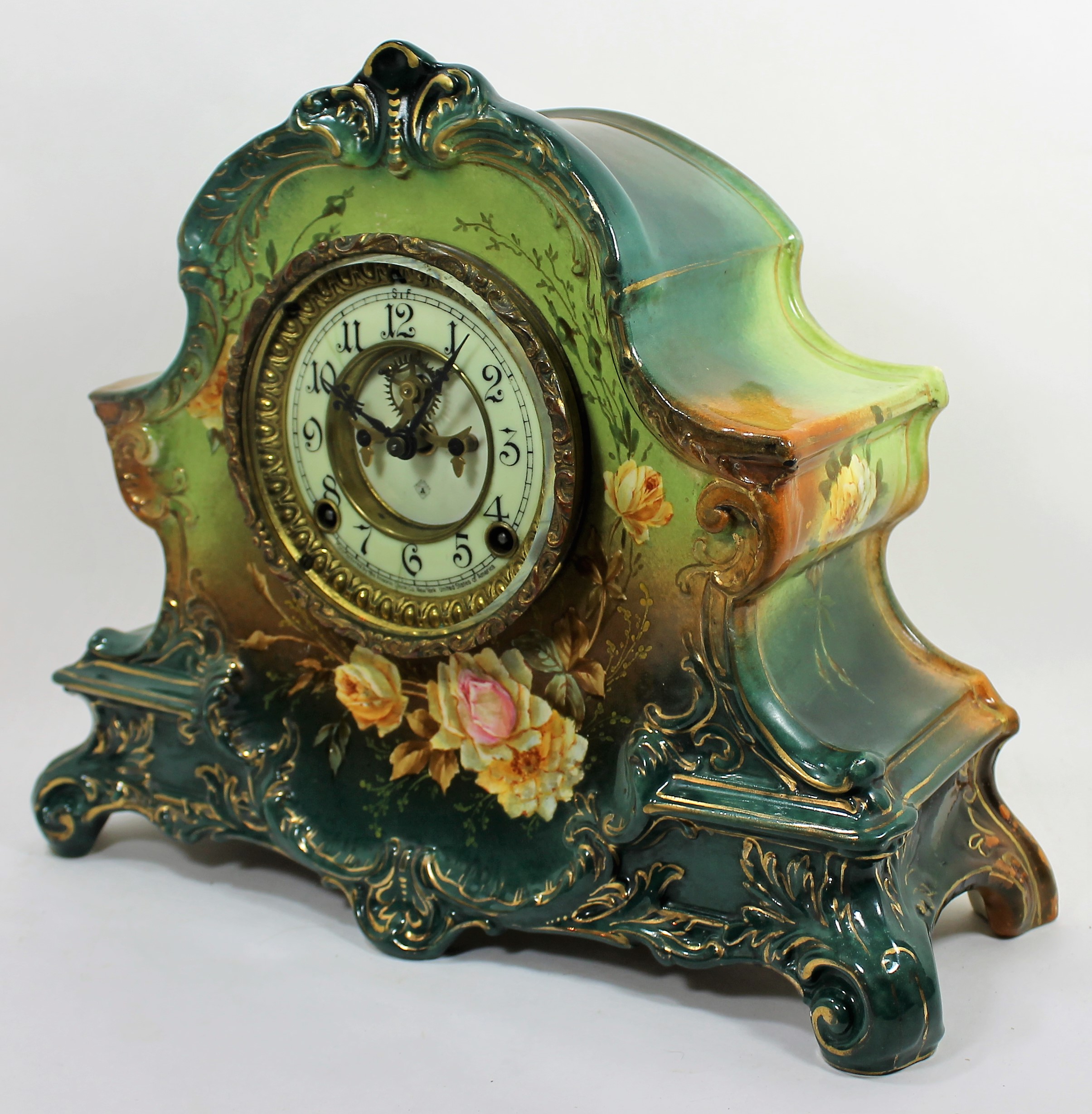 Ansonia “La Nord”, ca. 1904. This 12-inch porcelain clock has great coloring and no flaws, repairs,