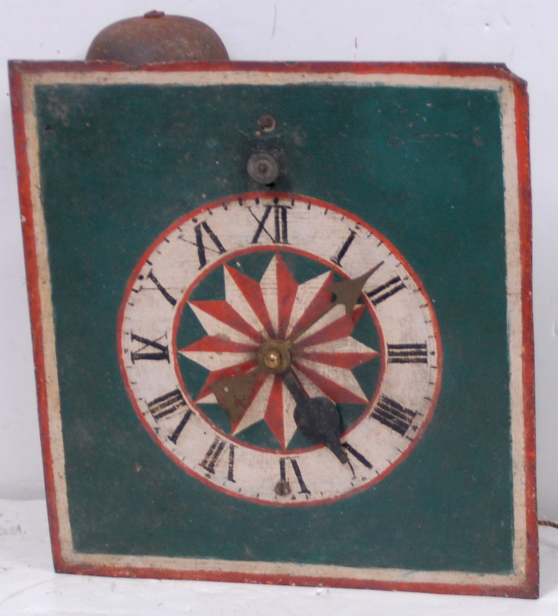 that has been removed and electrified. The motor is small like a Telechron. The pendulum should hang in front of the dial, part of