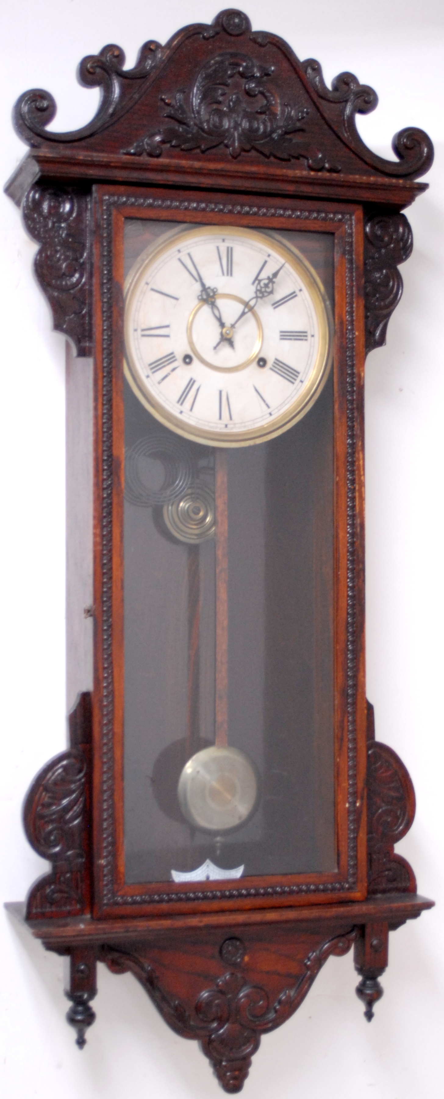 hands and pendulum are original to the clock. The 30-inch-high rosewood case is very nice to be 140 years old. This is a fine example